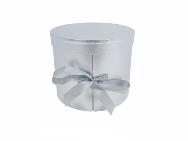 CAIXA CARTÃO REDONDA C/ LAÇO PRATA METALIZADO 23X19CM