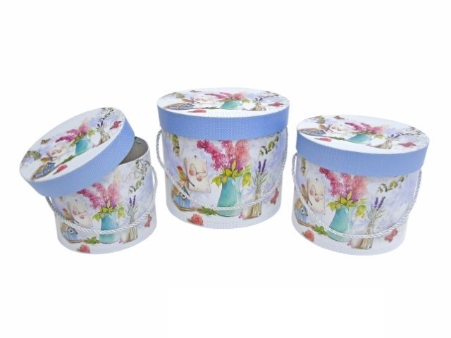 CONJ. 3 CAIXAS CARTAO RED. AZUIS/JARRA FLORES 23X19CM