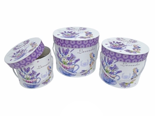 CONJ. 3 CAIXAS CARTAO RED. BRANCO/LILÁS, CHÁVENA FLORES 23X19CM