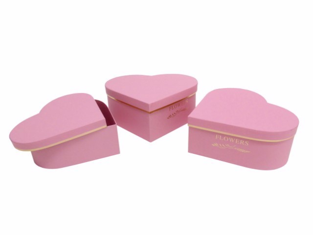 CONJ. 3 CAIXAS CARTAO CORAÇAO COR ROSA 28X26X11 CM