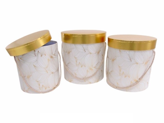 CONJ. 3 CAIXAS CARTAO RED. COR BRANCO/OURO 24X26CM