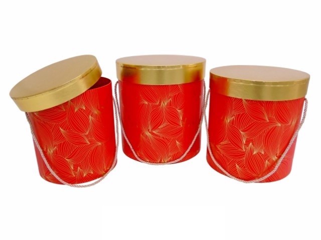 CONJ. 3 CAIXAS CARTAO RED. COR VERMELHO/OURO 24X26CM