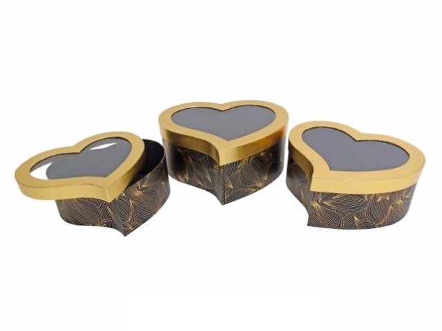 CONJ. 3 CAIXAS CARTAO CORAÇAO PRETO/OURO 31X26X13CM