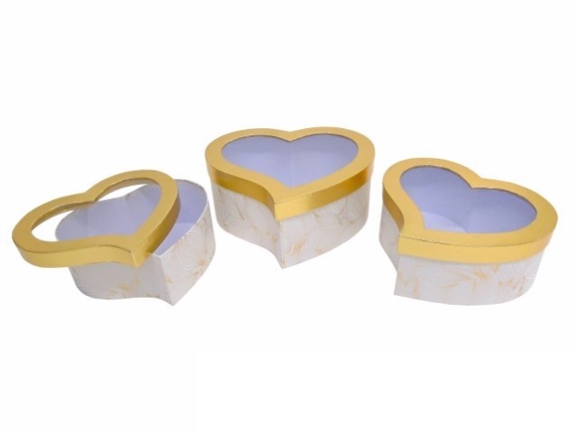 CONJ. 3 CAIXAS CARTAO CORAÇAO BRANCO/OURO 31X26X13CM