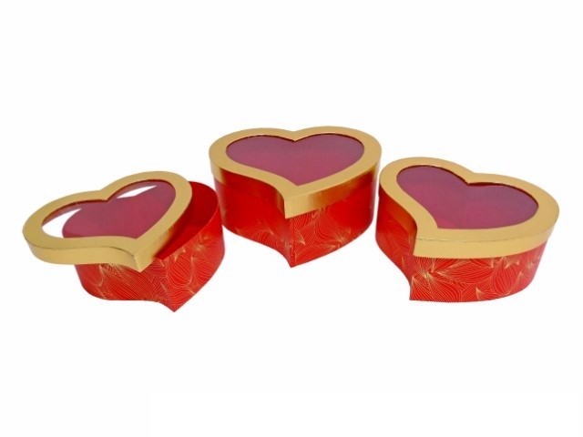 CONJ. 3 CAIXAS CARTAO CORAÇAO VERMELHO/OURO 31X26X13CM
