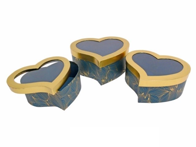 CONJ. 3 CAIXAS CARTAO CORAÇAO VERDE/OURO 31X26X13CM