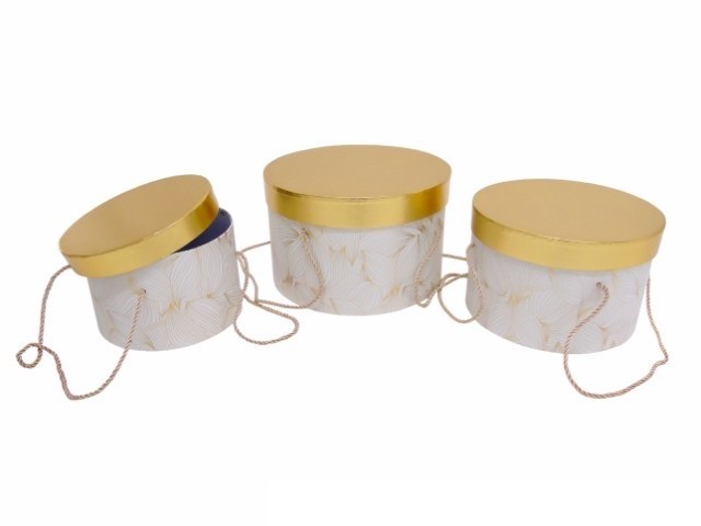 CONJ. 3 CAIXAS CARTAO RED. COR BRANCO/OURO 27X17CM