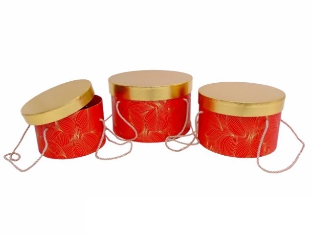 CONJ. 3 CAIXAS CARTAO RED. COR VERMELHO/OURO 27X17CM