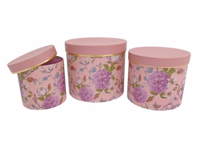 CONJ. 3 CAIXAS CARTAO COR ROSA VINTAGE, HORTÊNSIAS 20X17CM