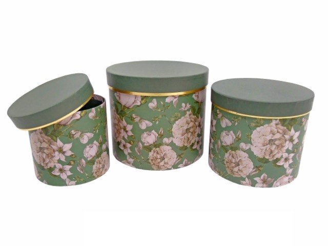 CONJ. 3 CAIXAS CARTAO COR VERDE VINTAGE, HORTÊNSIAS 20X17CM