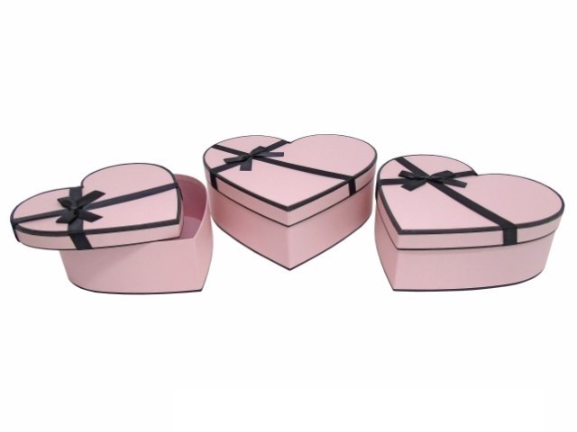 CONJ. 3 CAIXAS CARTAO CORAÇAO COR ROSA CLARO 33X32X11CM