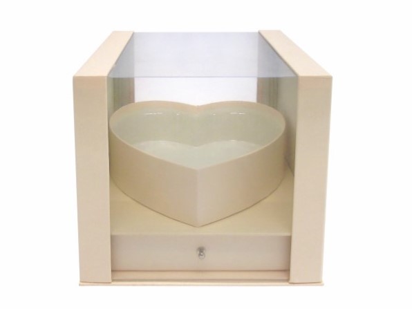 CAIXA CARTAO COR CREME C/ CORAÇÃO 24X24X21CM