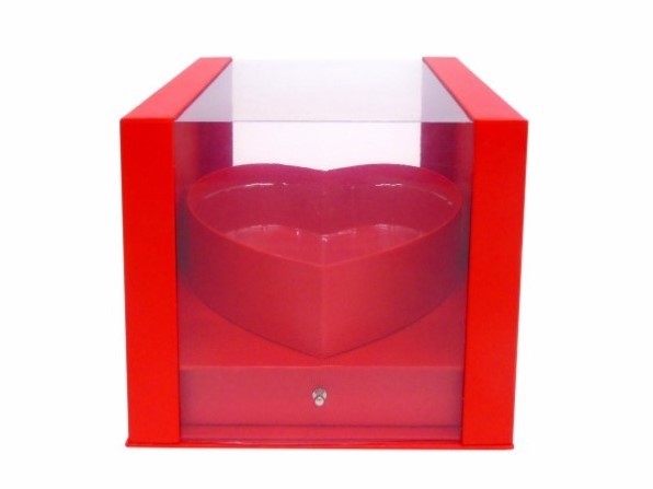 CAIXA CARTAO COR VERMELHO C/ CORAÇÃO 24X24X21CM