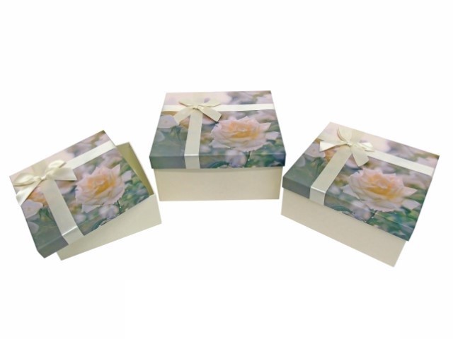 CONJ. 3 CAIXAS CARTAO COR CREME FLORES 25X25X12CM