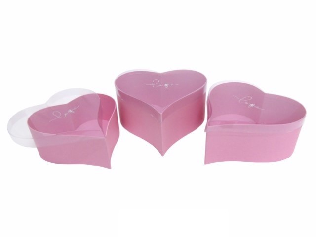 CONJ. 3 CAIXAS CARTAO CORAÇÃO ROSA CLARO 25X26X11CM