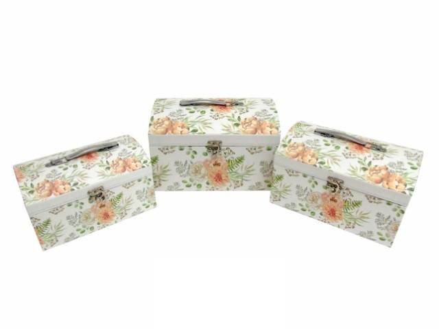 CONJ. 3 CAIXAS BAU RECT. COR BRANCO/FLORES 26X18X16CM