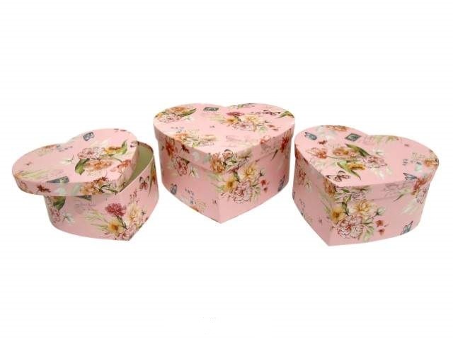 CONJ. 3 CAIXAS CARTAO CORAÇAO COR FLORES ROSA 28X25X13CM