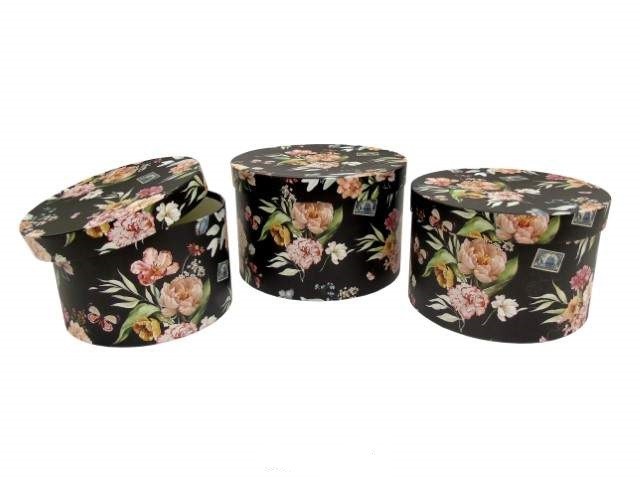 CONJ. 3 CAIXAS CARTAO RED. COR FLORES PRETO 24X16CM