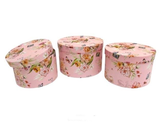 CONJ. 3 CAIXAS CARTAO RED. COR FLORES ROSA 24X16CM