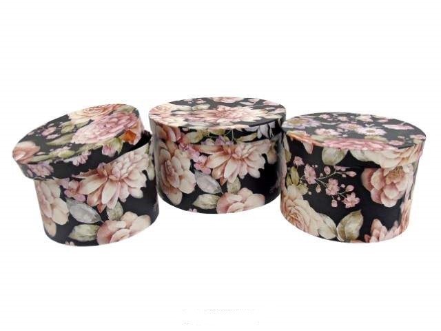 CONJ. 3 CAIXAS CARTAO RED. COR PRETO FLORES 25X15CM