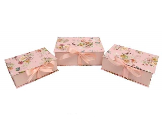CONJ. 3 CAIXAS CARTAO LIVRO COR FLORES ROSA 30X21X10CM