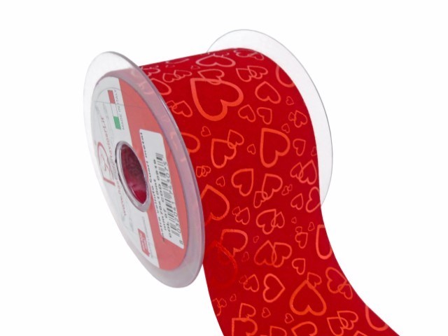 FITA VELUDO VERMELHA C/ CORAÇÕES 70MMX10M