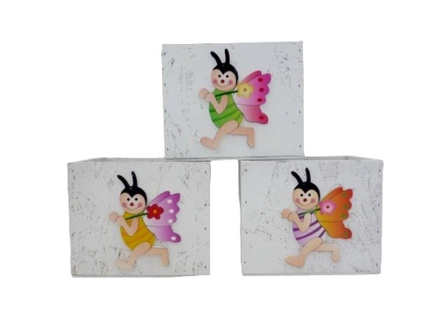 CONJ 3 CAIXAS BRANCAS DE MADEIRA C/ JOANINHA, 15X13.5X12CM