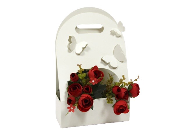 10 SACOS CARTÃO C/ BORBOLETAS, BRANCO, 20X8X30CM