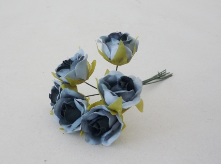 10 Molhos de 6 Rositas, Azul Velho, tecido/papel - 2cm