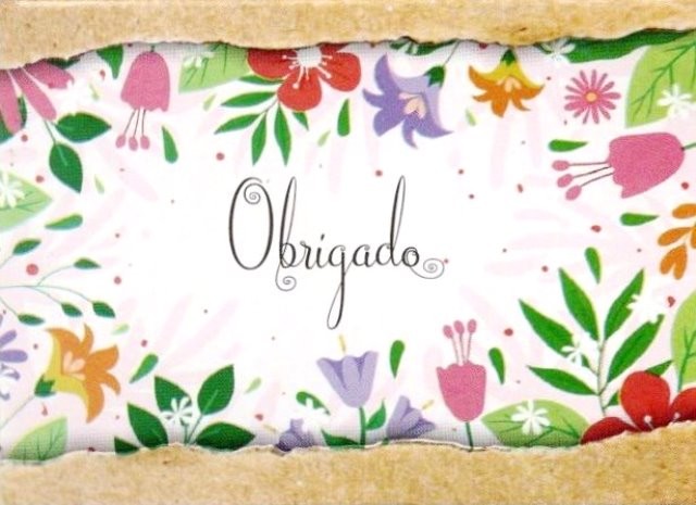 CARTÕES ENVELOPE X15, "OBRIGADO", CREME/FLORES