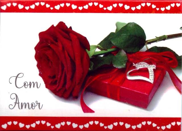 CARTÕES ENVELOPE X15, "COM AMOR", ROSA VERMELHA/PRESENTE