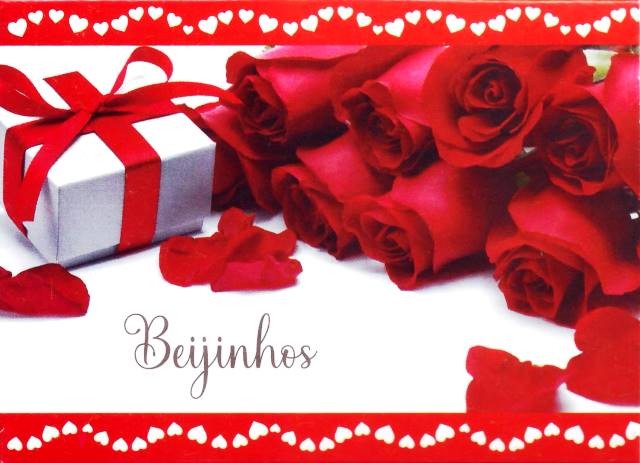 CARTÕES ENVELOPE X15, "BEIJINHOS", ROSAS VERMELHAS/PRESENTE