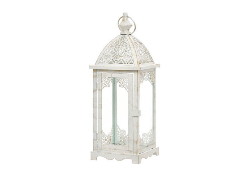 Lanterna em Metal Branco Envelhecido, 16x16x42cm