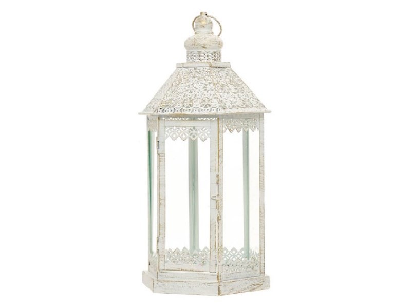 Lanterna em Metal Branco Envelhecido, 21x15.5x41cm