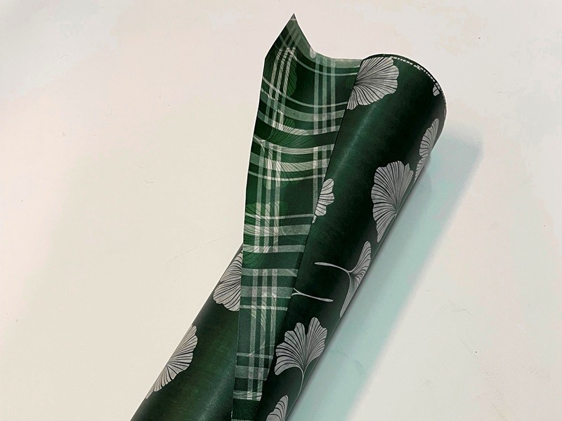 BIO PAPEL IMPERMEÁVEL FOLHAS DE GINKO, VERDE ESCURO, 70CMX40MT, GYLOBA GG