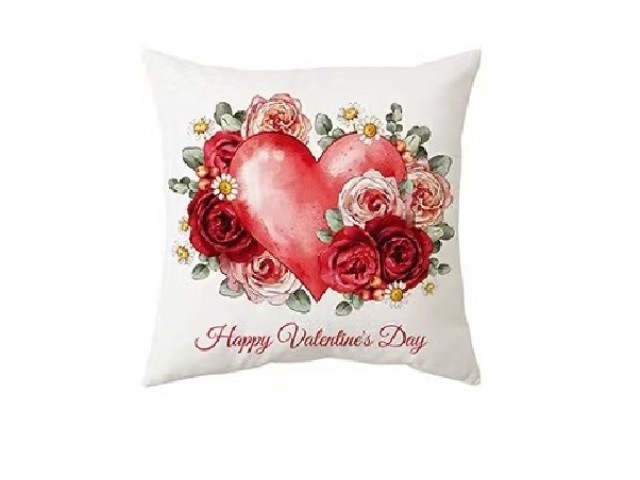 ALMOFADA QUAD. BRANCA "HAPPY VALENTINES DAY", CORAÇÃO/FLORES, 44X44CM