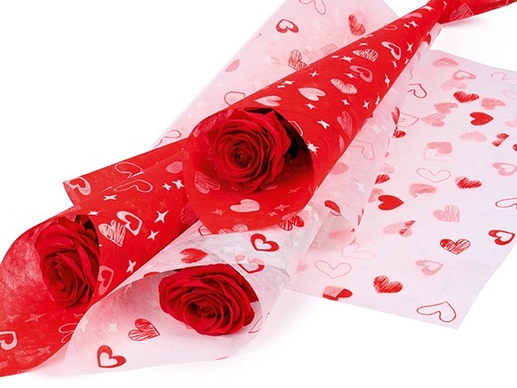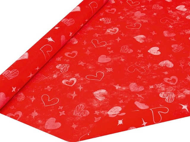 ROLO TELA VERMELHO C/ CORAÇÕES, 51CMX9MT