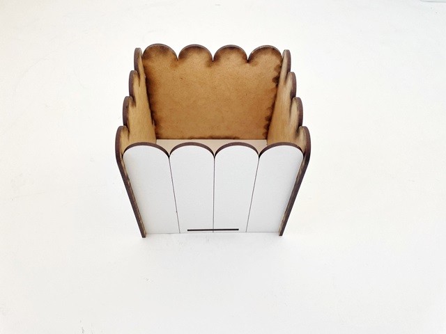 MADEIRA - CAIXA QUADRADA DE RIPAS BRANCAS, 12X12CMX12CM