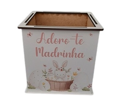 MADEIRA - VASO C/COELHOS "ADORO-TE MADRINHA" 12x12x12cm