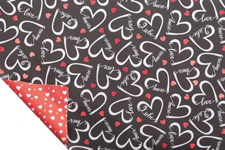 CELOFANE LOVE HEART C/CORACOES PRETO 80cm x 20mt