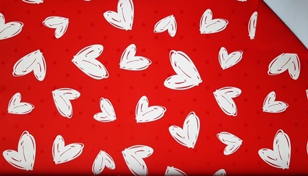 ROLO TELA VERMELHO C/ CORAÇÕES, 51CMX9MT