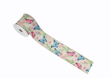 ROLO DECORATIVO COR JUTA CREME BORBOLETAS 64MM X 1