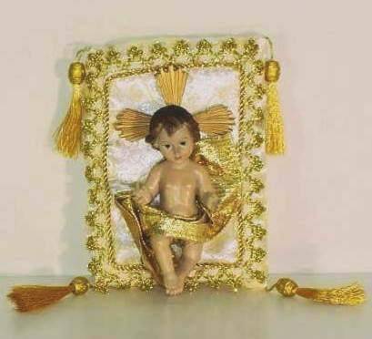 Menino Jesus c/ Almofada Creme/Ouro, tecido/marfinite - 18cm