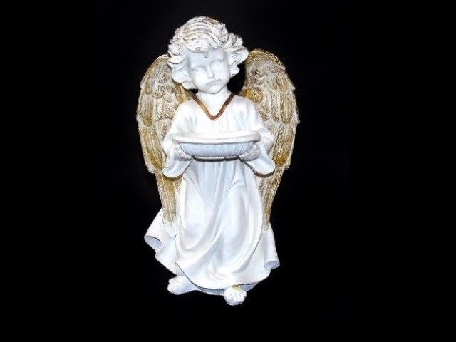 Anjo em Pé c/ Pia, Br/Ouro - 41cm