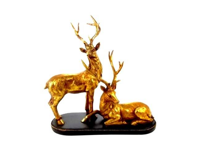 Peça c/ 2 Veados, Ouro, Marfinite - 36x16x36cm