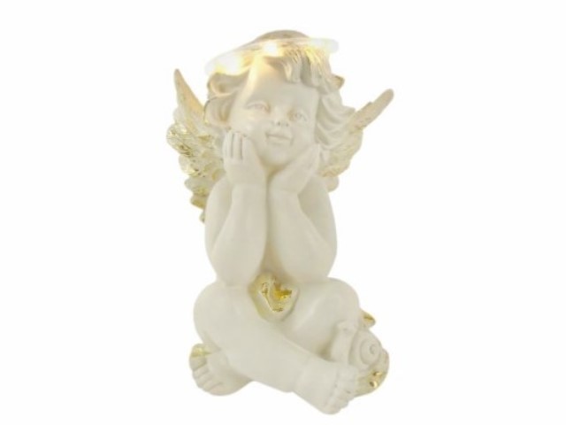 ANJO SENTADO C/LUZ COR BRANCO+OURO 20X13X26CM