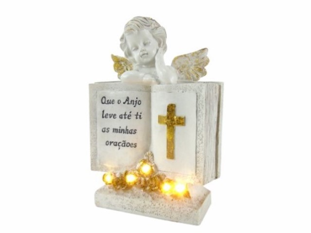ANJO C/LIVRO C/DIZERES COR BRANCO OURO 20X8X28CM