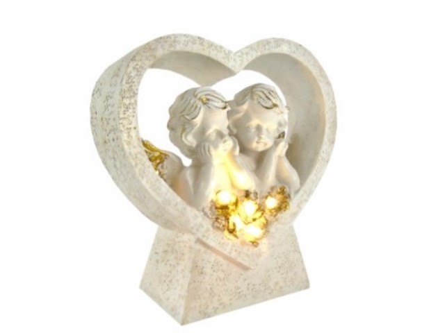 CORAÇAO C/ANJOS C/LUZ COR BRANCO OURO 19X8X20CM