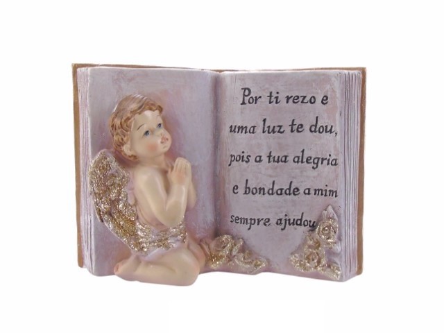 MARFINITE - CONJ 2 ANJOS C/DIZERES COR ROSA OURO 21X8X14CM