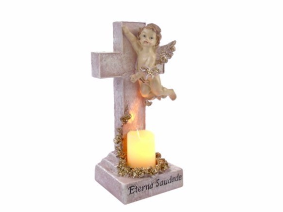 MARFINITE - ANJO NA CRUZ C/DIZERES COR ROSA/OURO 21X8X14CM